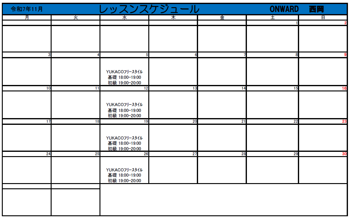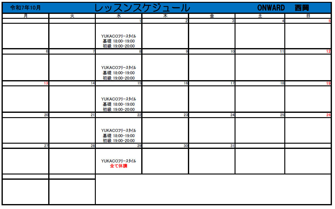 レッスン時間並びにインストラクターは予告なく変更、休講になる場合があります。